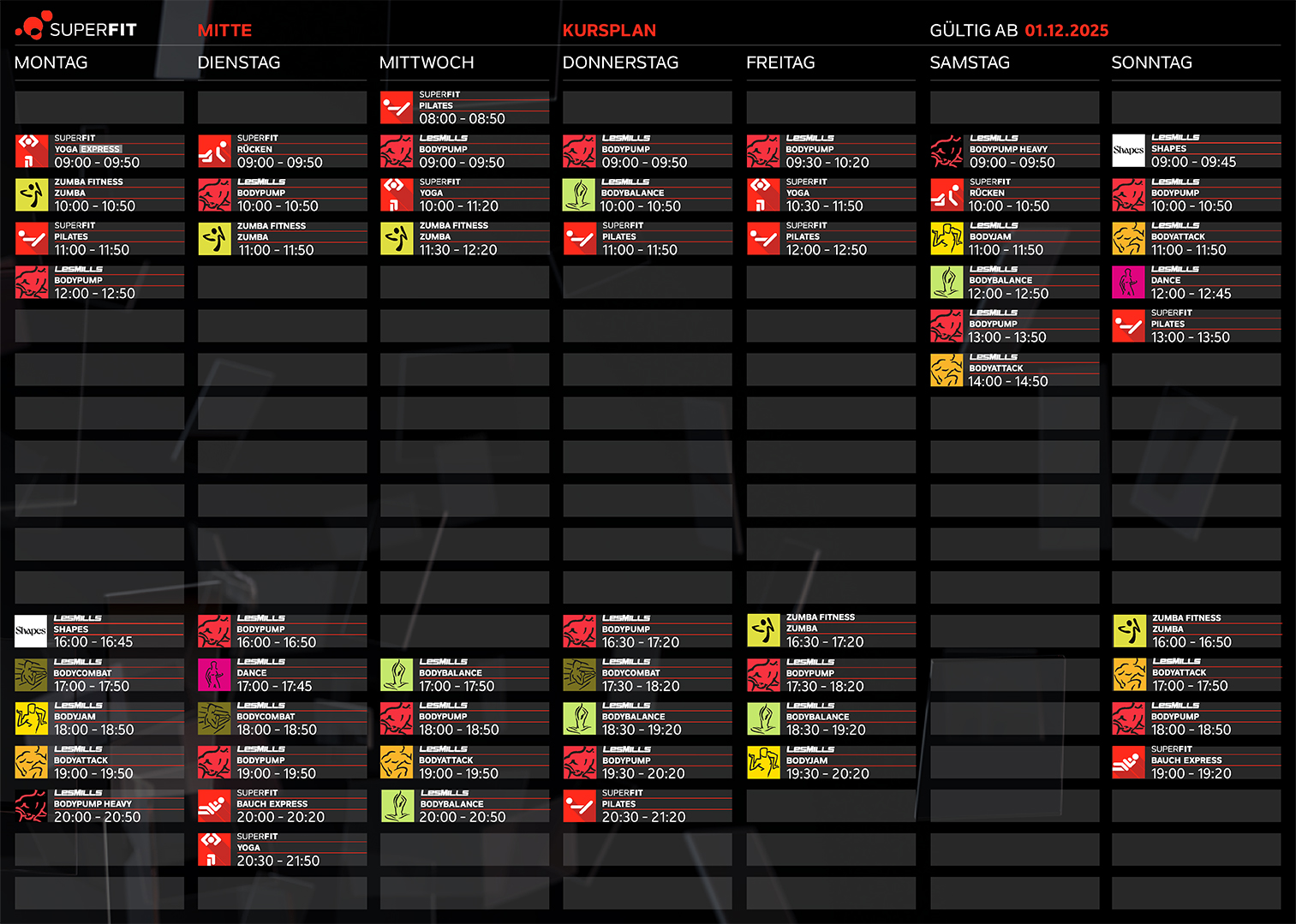 Zugang zu allen 10 SUPERFIT-Studios und +2.000 Kurse pro Monat